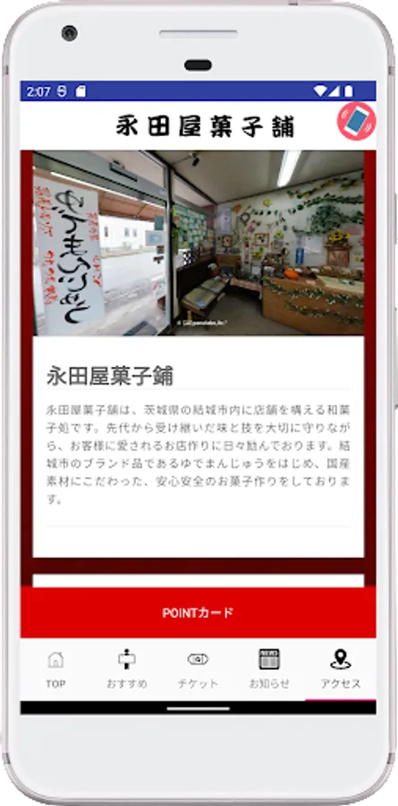 Nagataya Confectionery App is the official app of the Japanese confectionery shop "Nagataya Confectionery" located in Yuki 7621, Yuki City, Ibaraki Prefecture.
