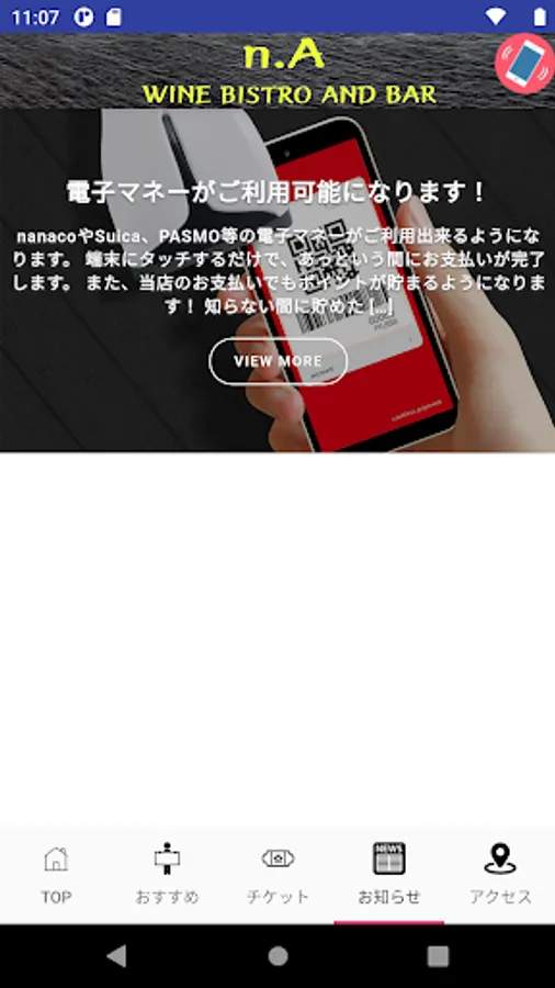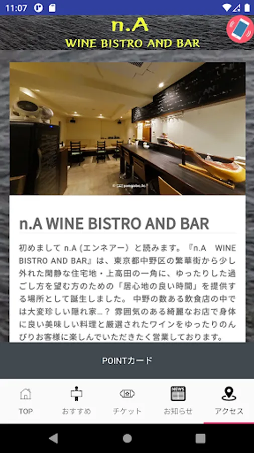 Enne Ar App is the official app of the wine bistro & bar "Enne Ar" located in Kamitakada 2-chome, Nakano-ku, Tokyo.