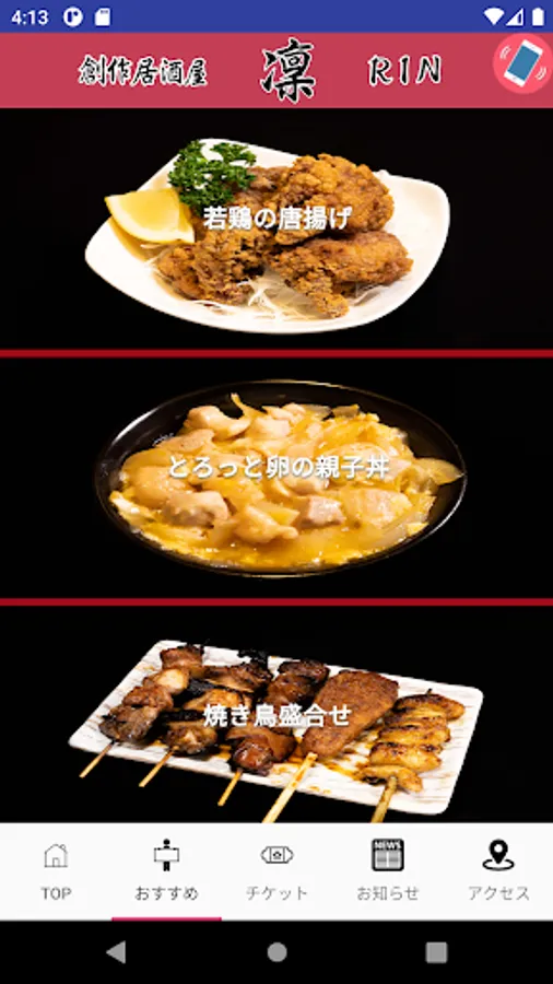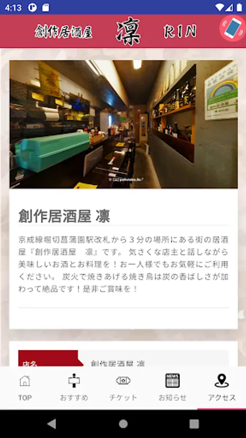 The Creative Izakaya Rin app is the official app of the izakaya "Creative Izakaya Rin" located at 3-2-18 Horikiri, Katsushika-ku, Tokyo.