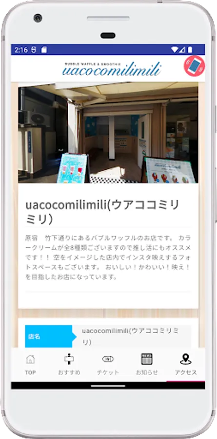 The UACOCOMILIMILI app is the official app of the Taiwanese waffle "UACOCOMILIMILI" located in Jingumae 1-chome, Shibuya-ku, Tokyo.