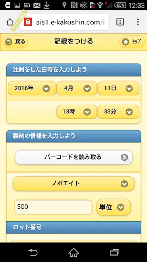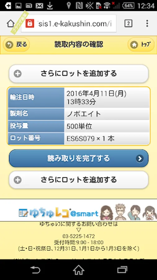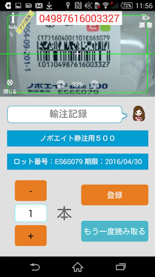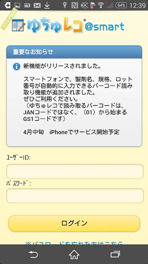 このアプリは「ゆちゅレコ」という輸注記録サービスのユーザのみが利用できます。「ゆちゅレコ」のユーザは、箱や製剤バイアルのバーコードを読み取って、製剤名・ロット番号を輸注記録として登録します。