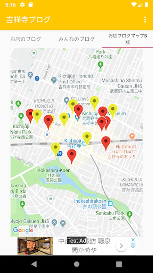 -New article map of the shop. The pin at the shop location where the blog has been updated changes from yellow to red.