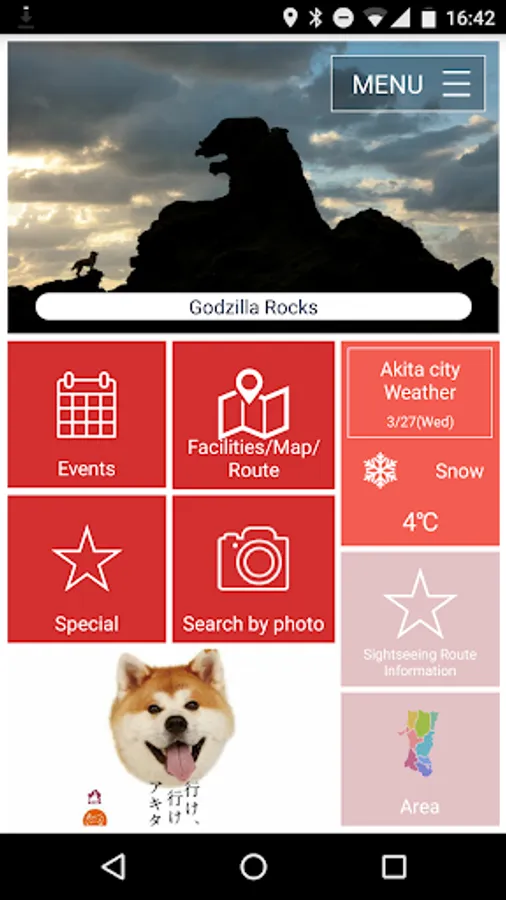 It divided into 8 area of Kazuno, Kita-akita, Noshiro and Yamamoto, Akita, Yuri, Senboku, Hiraka, Ogachi, and it can easily read the notification of sightseeing spots and events in each area.