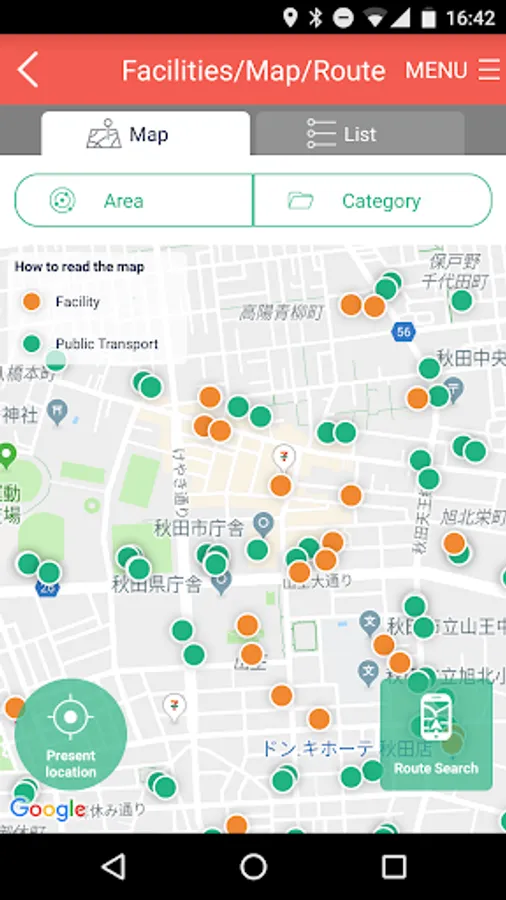 It is also possible to set facilities and event venue to the departure and destination, and search for the route.