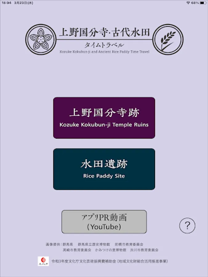 Ueno Kokubunji / Ancient Paddy Time Travel (Gunma Prefecture Official App) is an app where you can enjoy learning about Ueno Kokubunji and the ruins of paddy fields while experiencing ancient Gunma.