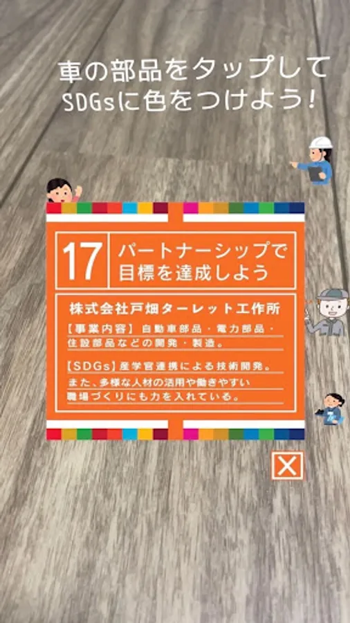 When you tap the parts on the screen, the SDGs logo mark will be colored, and when all the colors are applied, the car will be completed. .