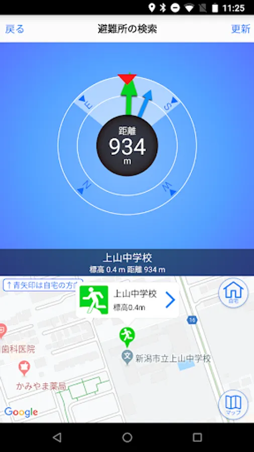 さらに、現在地周辺の指定避難所・指定緊急避難場所が表示され、ARカメラ機能や避難コンパス機能で災害時の避難行動を支援します。