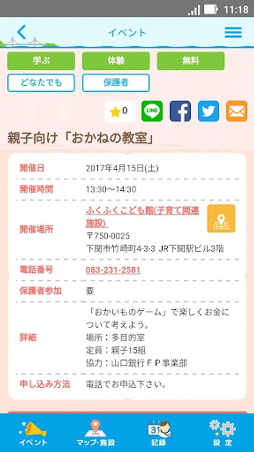 イベント開催場所や、赤ちゃんの駅等、市内の子育て施設を検索できます