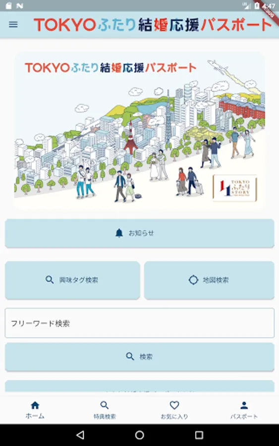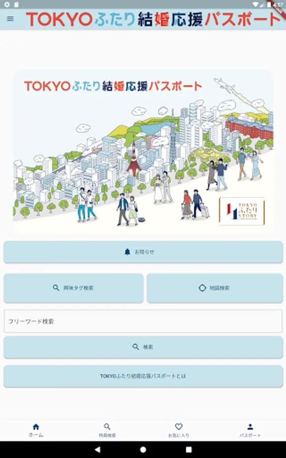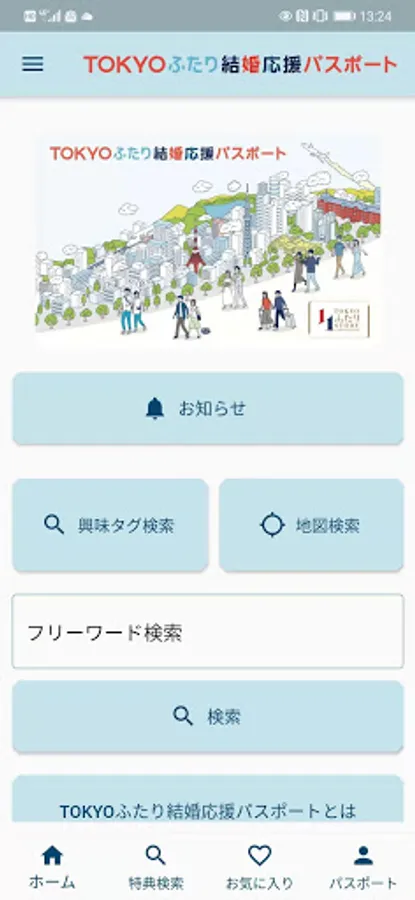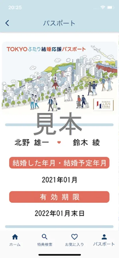 In the TOKYO two-marriage support passport business, "engaged couples planning to get married within one year" and "newly-married couples within one year of getting married" present the "TOKYO two-marriage support passport" issued by the city. By doing so, it is an initiative that allows you to receive the marriage support service provided by each sponsoring store.