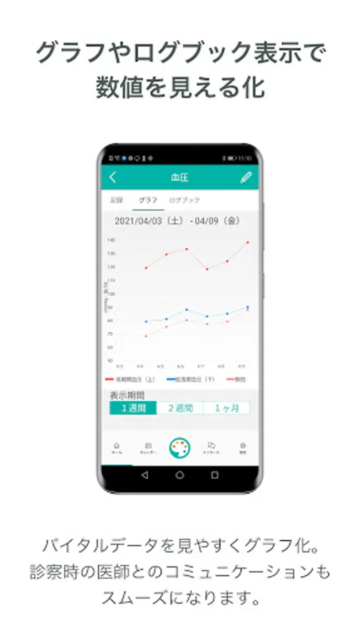 Body Palette Plus is a free app that is convenient for daily health management because it automatically records health values such as blood sugar, blood pressure, body temperature, weight, and number of steps, and you can see the changes on the graph.