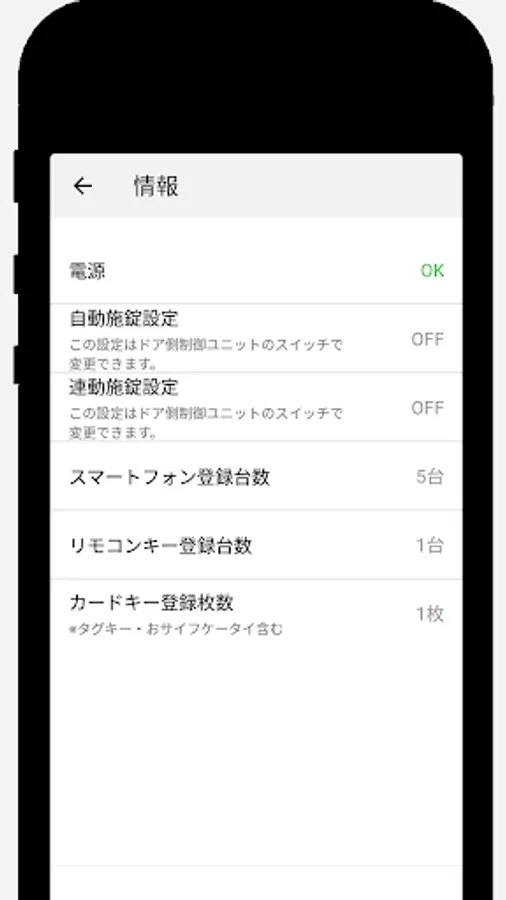 You can check the list of registered authentication keys and the setting status of automatic locking, etc.