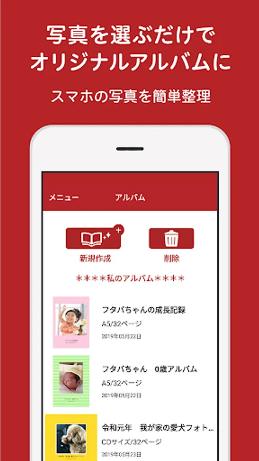 "Mage + Photo Organizing App" is "easy to see and understand" and "easy operation" to complete your own original album in a short time.