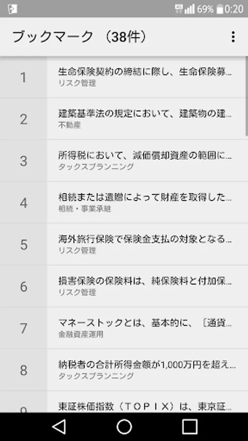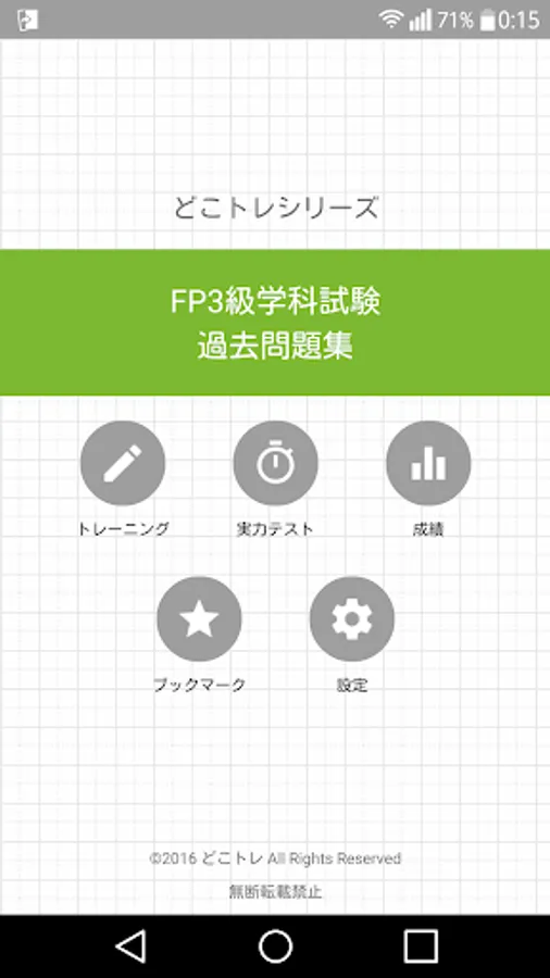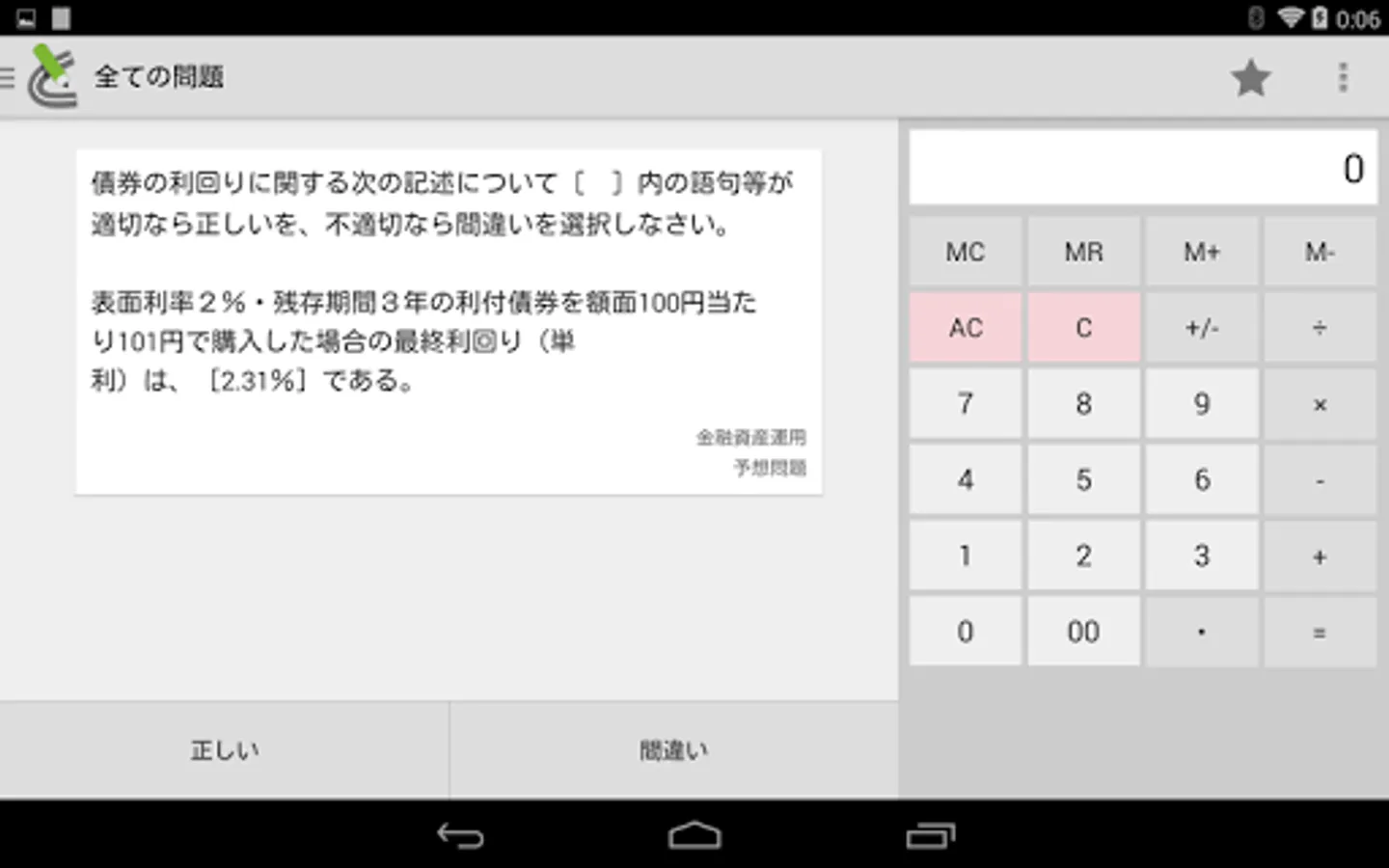 It is a 3rd grade financial planner (FP) problem collection app equipped with many useful functions. The recorded questions are updated free of charge according to legal revisions and test implementation. You can always learn with the latest problems.