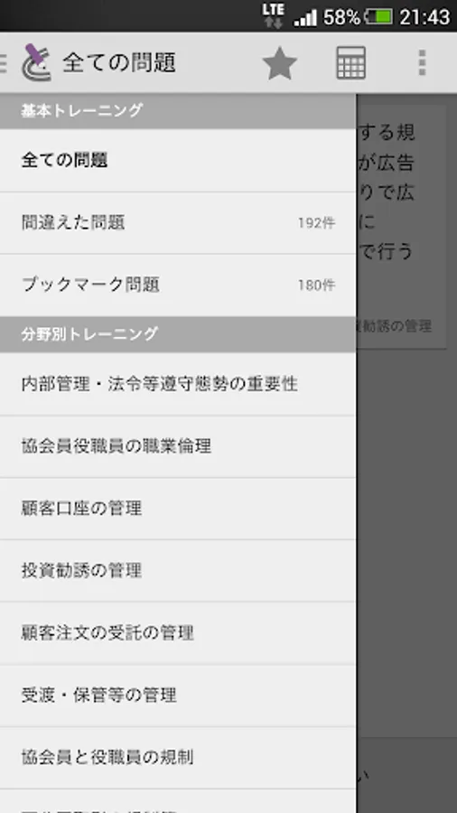 多数の便利機能を搭載した内部管理責任者問題集アプリです。収録されている問題は、法改正や試験の実施に合わせて無料で更新。どこトレなら常に最新の問題で学習できます。