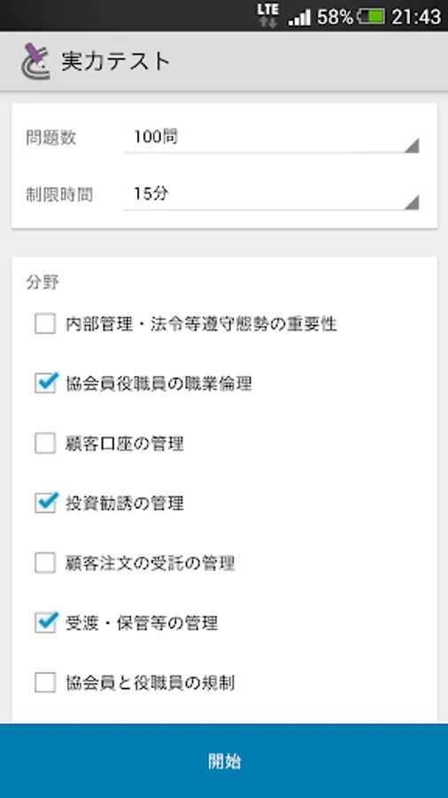 ・トレーニング(全問ランダム、間違えた問題、分野別等)