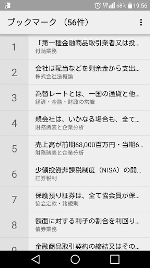 多数の便利機能を搭載した証券外務員二種問題集アプリです。収録されている問題は、法改正や試験の実施に合わせて無料で更新。どこトレなら常に最新の問題で学習できます。