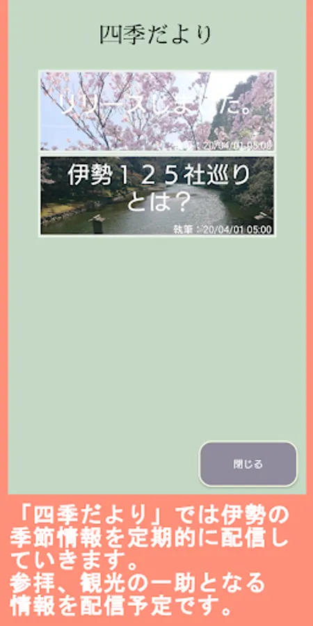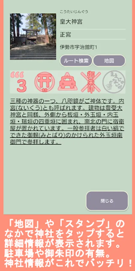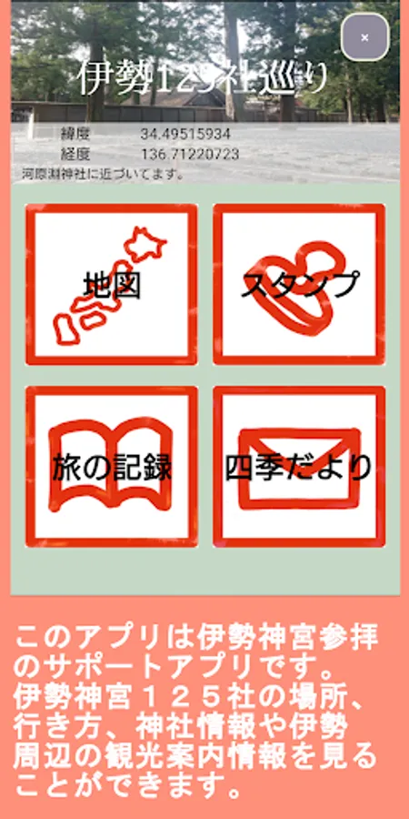 This app is a tourist information app around Ise-Shima centered around 125 Ise Jingu shrines.