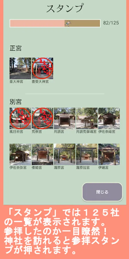Since some of the 125 shrines do not have parking lots, you may be on foot from nearby stations and parking spaces, so please use the information in the app.