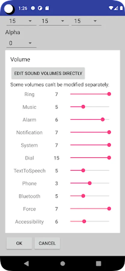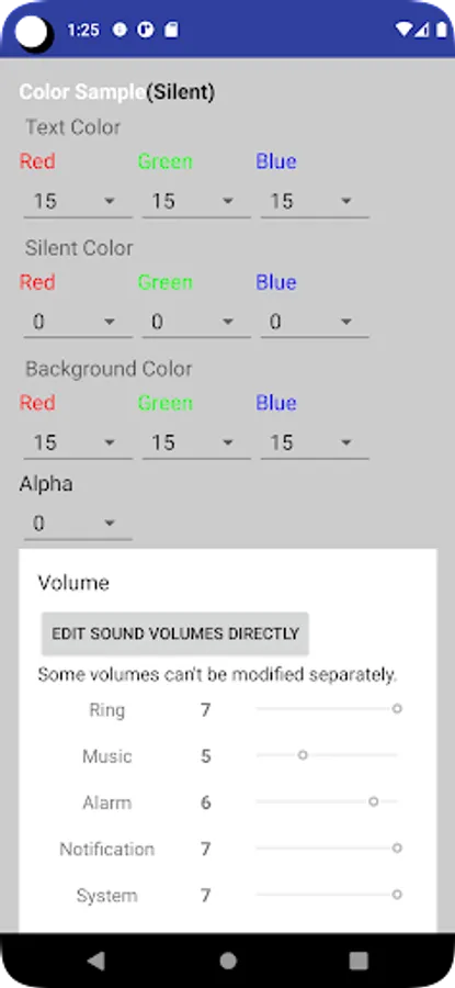 Android sound volumes are separated into Ringtone, Audio, Alarm, Notification, System, Phone call, Dial tone, Bluetooth phone call, Text To Speech, Enforced System and Accessibility prompts. This widget can display all these 11 sound volumes on the home screen.