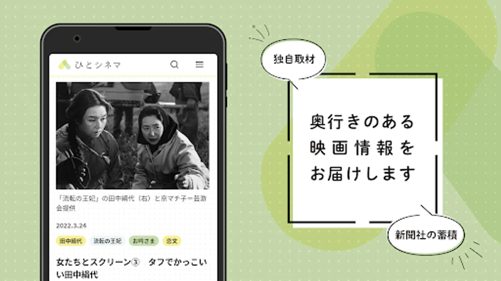 In the "Special Feature", we will explore the topic of the movie world in depth. What's happening at the production site, what the filmmaker is thinking. Related articles are also linked from the Mainichi Shimbun database. Connect the movie and the world.