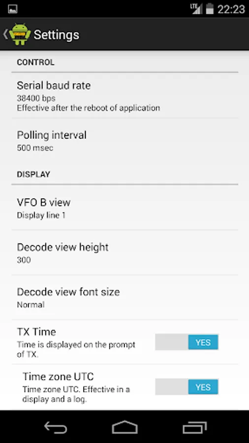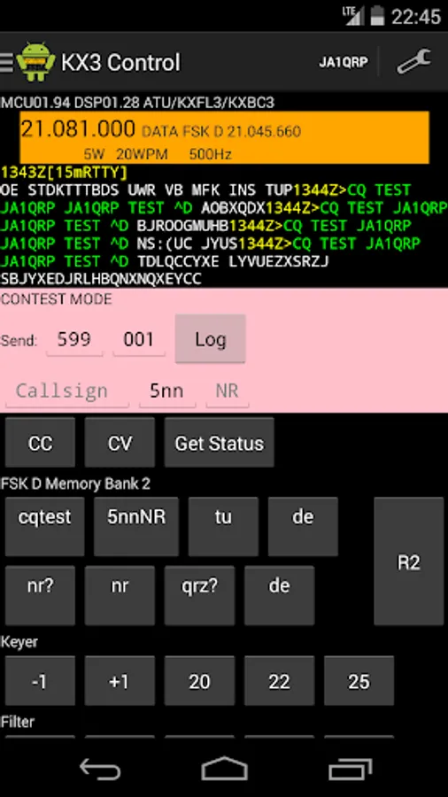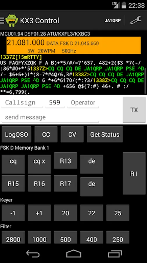 Destination: / sdcard/KX3Mate/decode_YYYYMMDD.txt