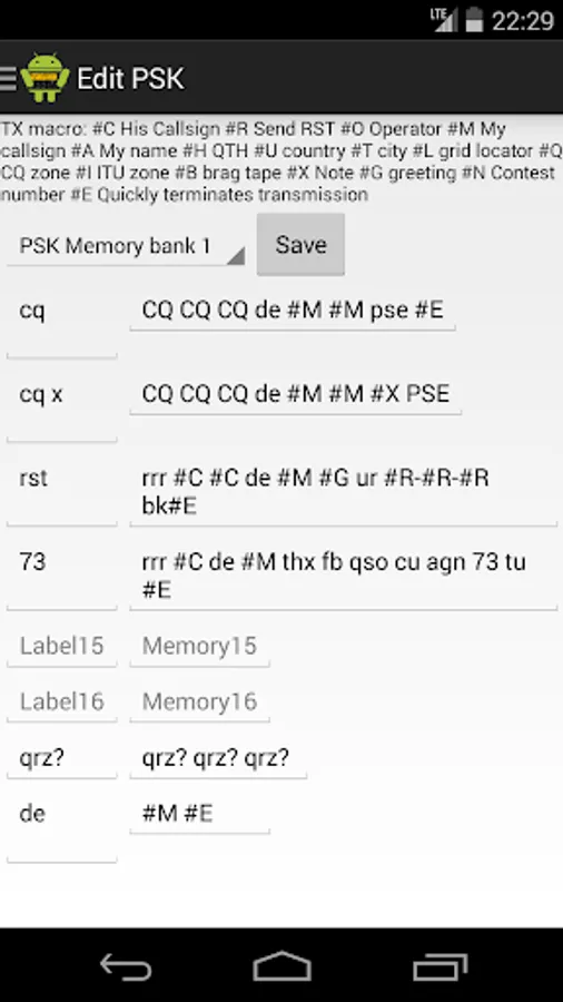 - I can be specified call sign, RST, user information, such as the message for macro.