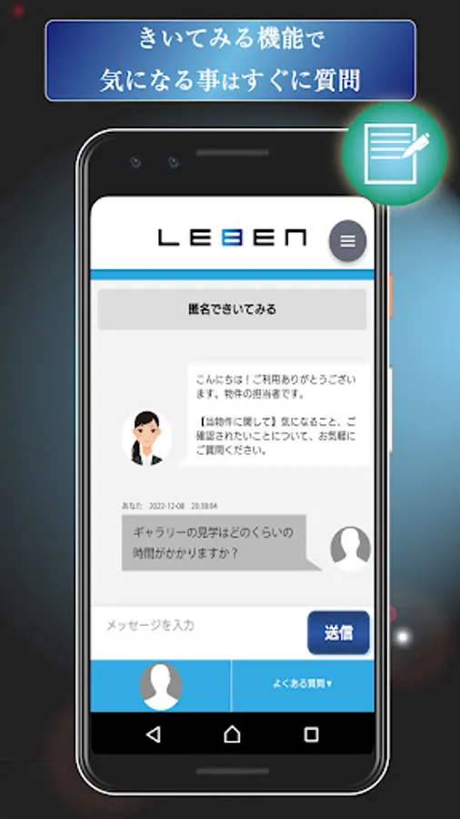 It can be used for communication with the person in charge, from requesting materials and making an appointment to visit, to making purchase decisions after the visit. (Depending on the property, it may not be available due to circumstances such as the sales phase)