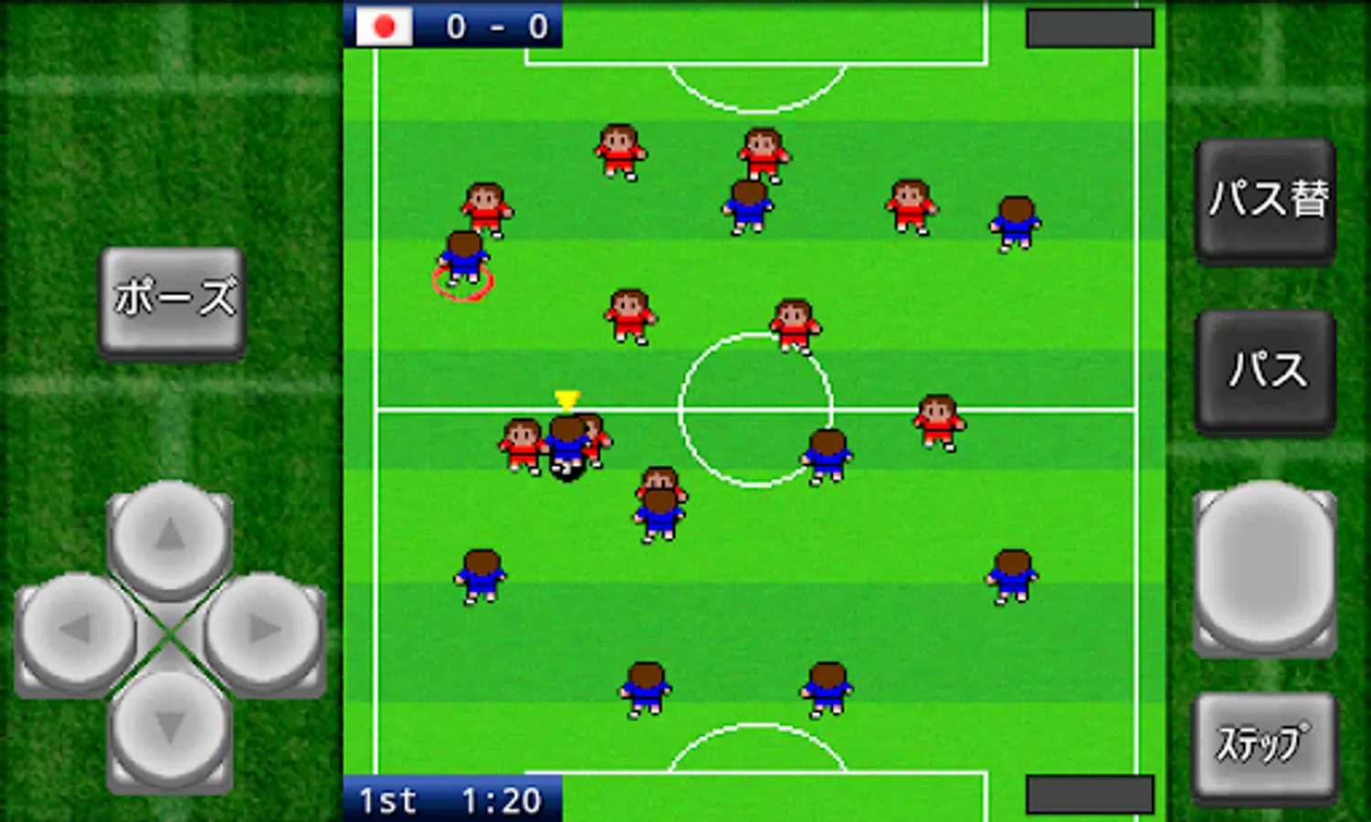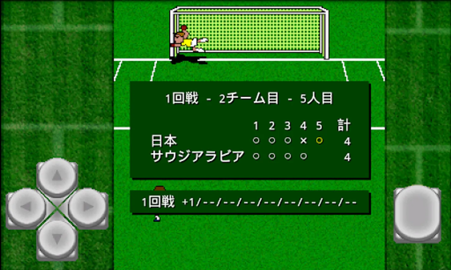 Gachinko is a soccer game in the series. On the pitch screen, use passing, dribbling, and centering to carry the ball to the front of the goal and shoot (accumulate the shoot meter). When the shoot meter reaches MAX, the screen transitions to the kick screen (conventional free kick/keeper screen). On the pitch screen, you can use tactics such as dribbling, stepping, short pass, long pass, centering in attack, and tackle, charge, and mark in defense.