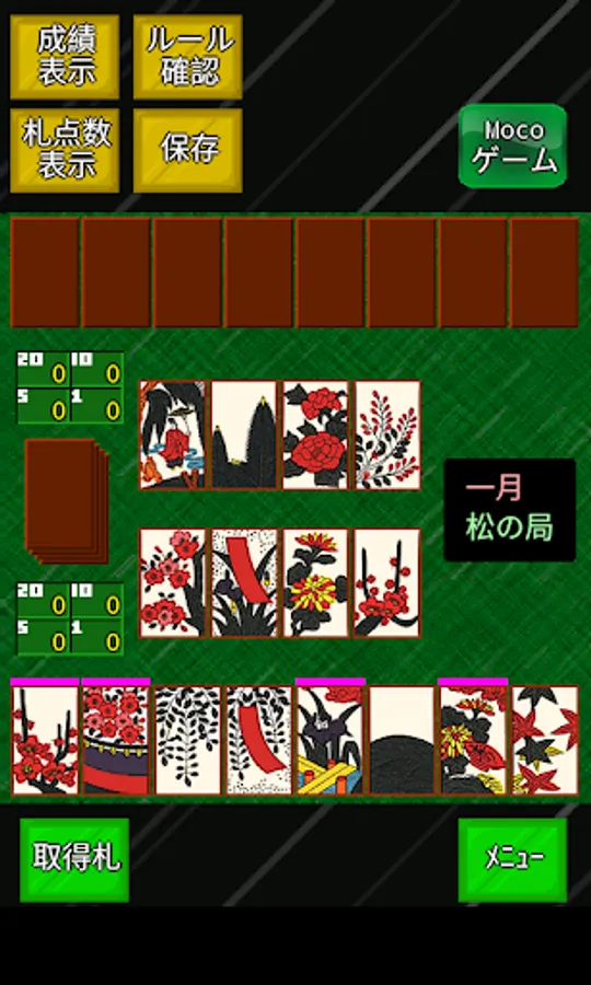 こいこいはなるべく基本的なルールを採用しています。役の一部は有効無効の設定が可能です。