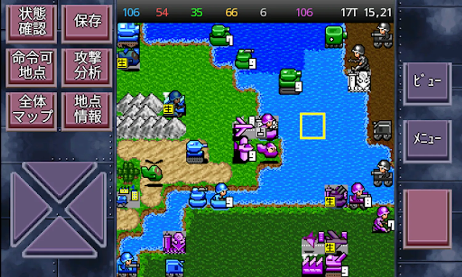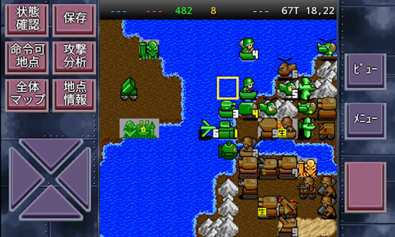 As a game, use various units such as infantry, tanks, fighters, bombers, cruisers, and battleships every turn to destroy all enemies and make the base your own.