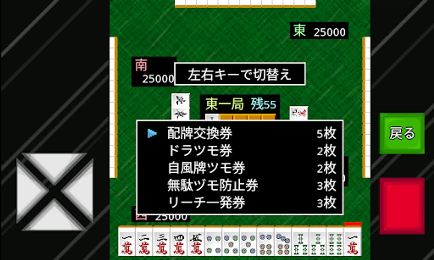 An easy-to-win four-player mahjong that allows you to exchange tiles and use items (loading, one-shot self-sweep, etc. are possible). There is a mode where you can only exchange tiles and a mode where you can use items.