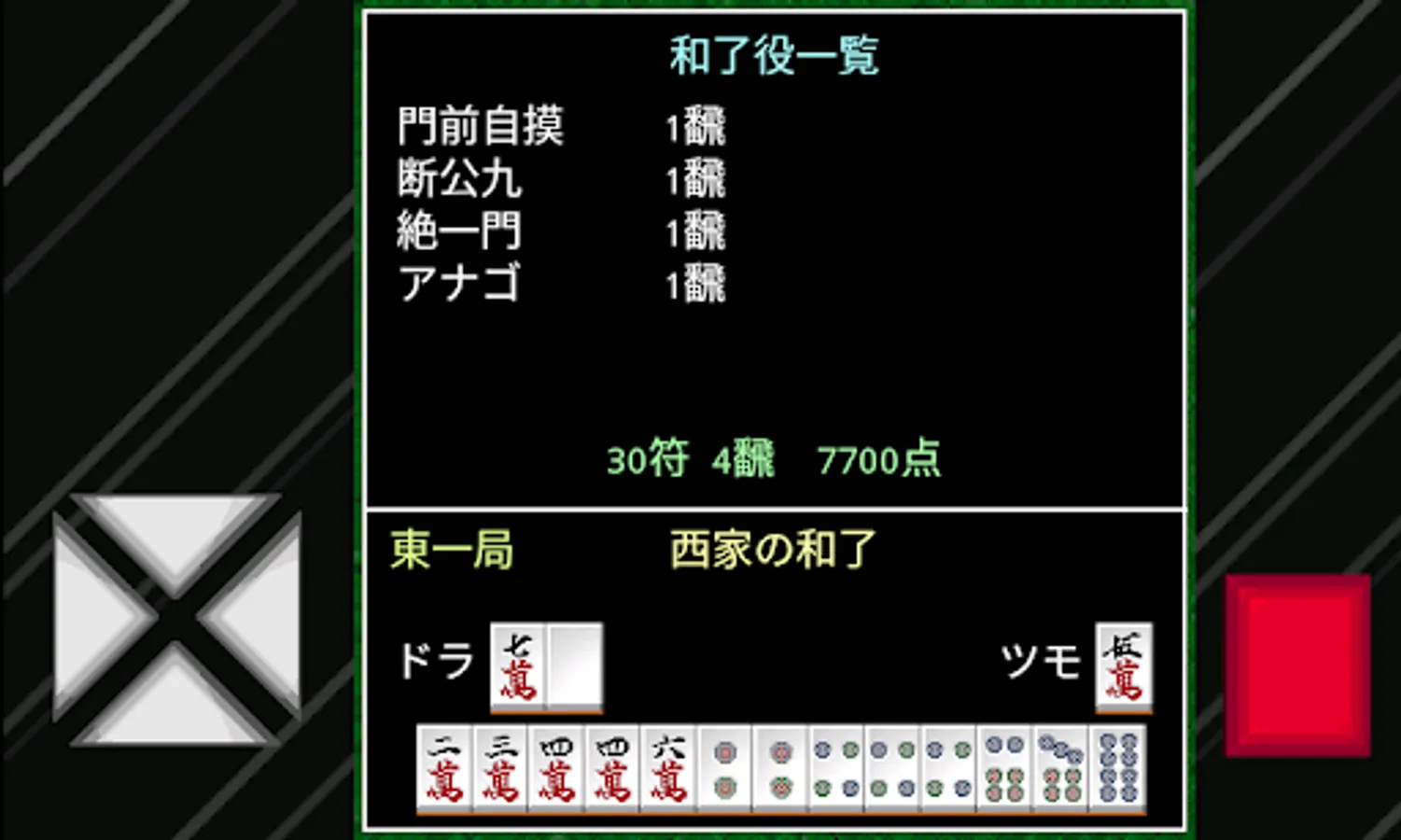 There are no items, etc., and the AI is more like a real battle, "Actual 4-player Mahjong", and the secretly popular 3-player "Mobile 3-player Mahjong" (saury) are also available as separate apps.