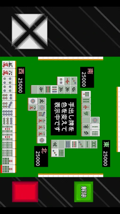 CPUの当たり牌を読みやすくするために、捨牌が手出しかツモ切りなのかを表示する機能があります。