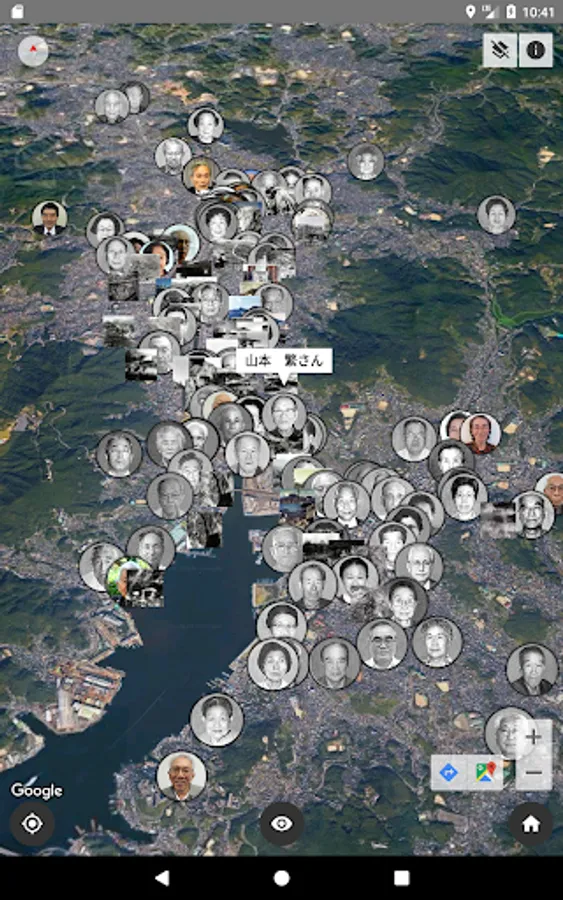 In the "Map mode", the data is displayed by markers on the 2-D map. Especially at Nagasaki, The Users can view the past situation around themselves beyond the time using a GPS function.