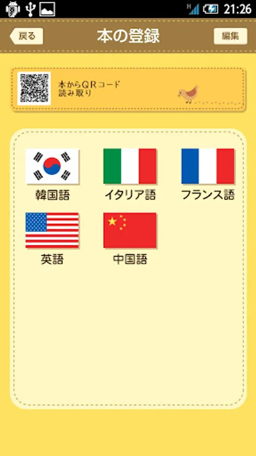 本アプリ内のQRコード機能を使って、ことりっぷ会話帖(本誌)に付いている袋とじ付録の中のQRコードを読み取ってください。