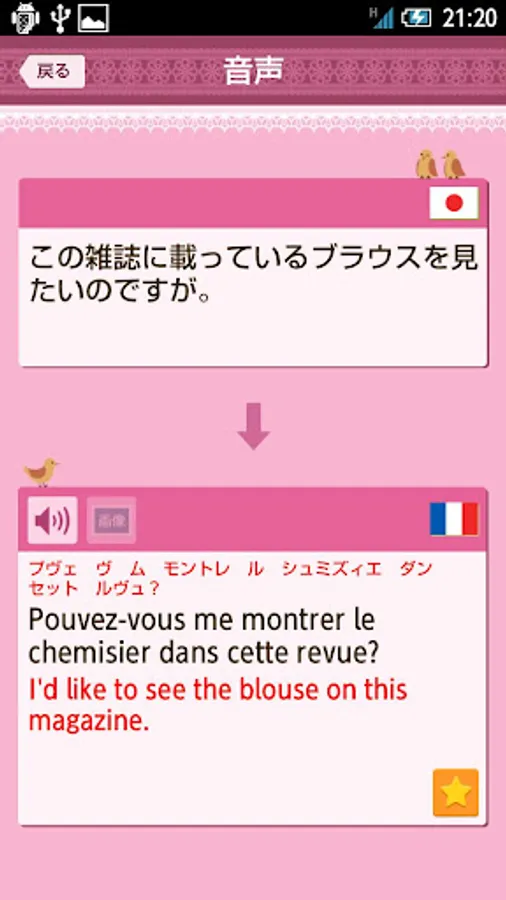 3.日本語と現地語を対比しながら、スピーカーボタンで音声が聞けます。
