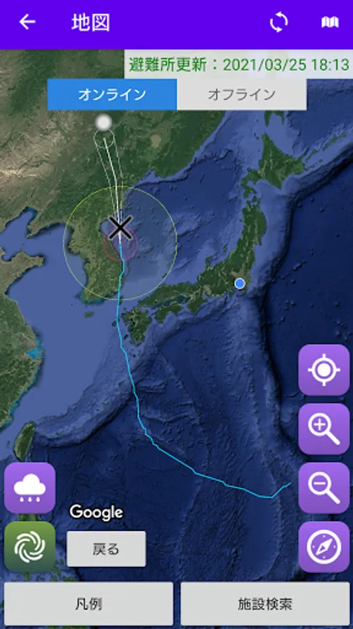・ Confirmation of rainfall information and typhoon information on the map