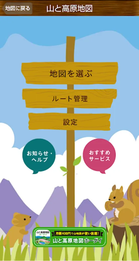 ★ With the sister app "Mountain and Plateau Map Hodai", you can use the latest maps of all areas for a fixed fee (500 yen/month or 4,800 yen/year). You can also create a climbing route plan as an original function. Try it free for 7 days first.