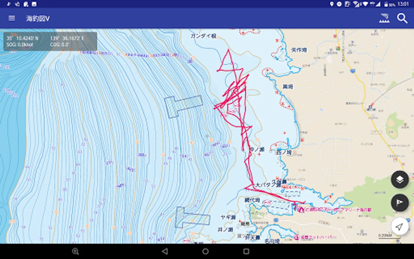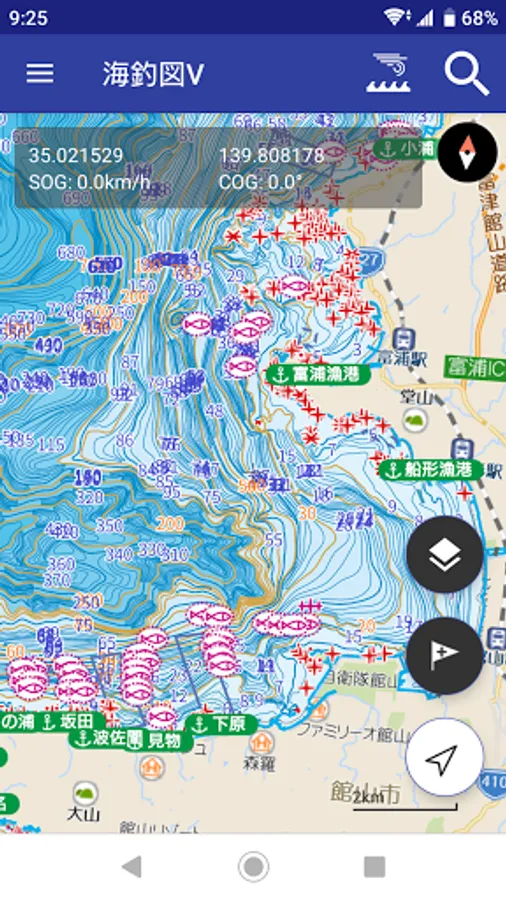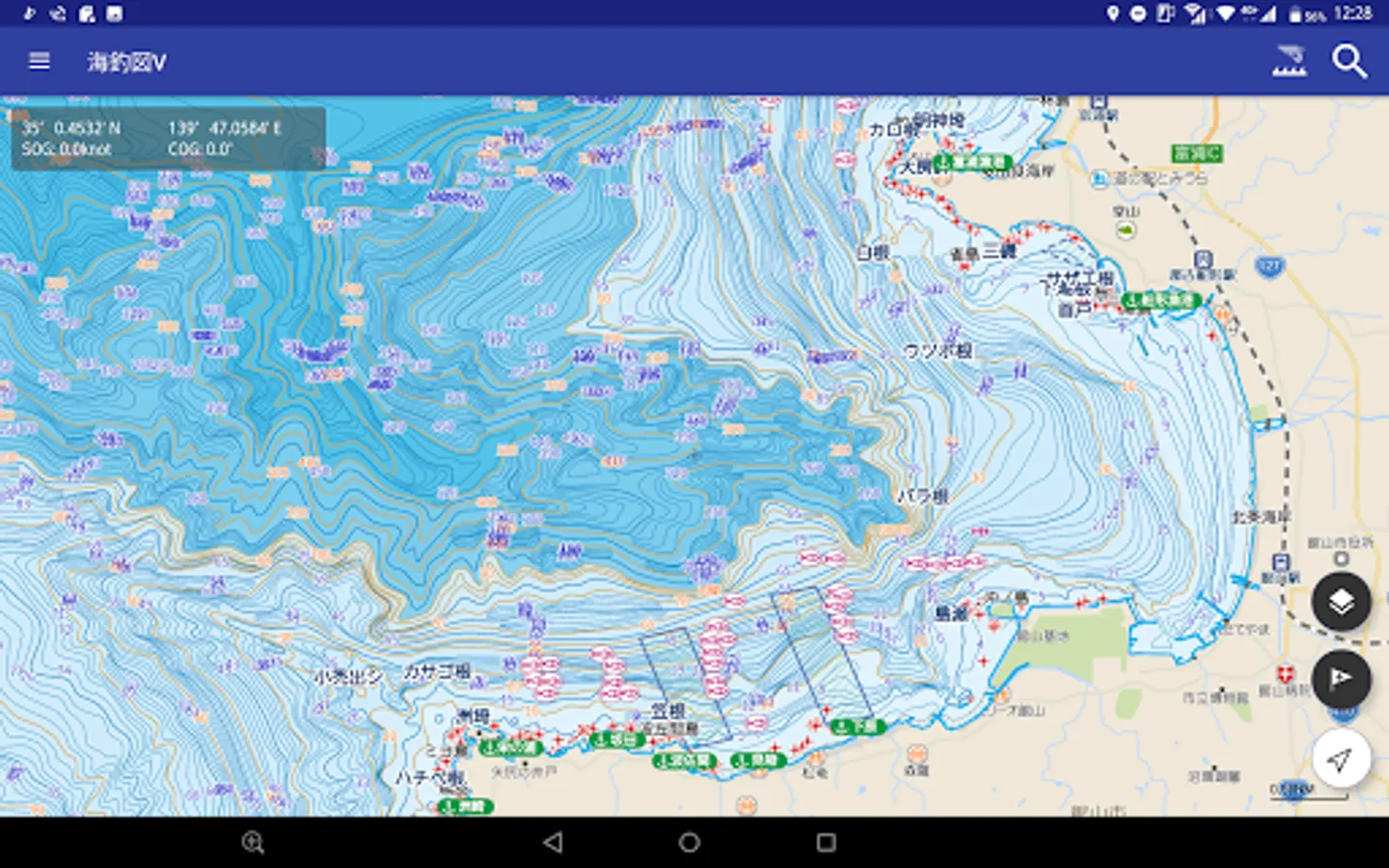 This is a sea fishing map app that has been significantly renewed from the previous version of "Sea Fishing Chart", such as greatly expanding the area, making the map seamless, and improving operability.