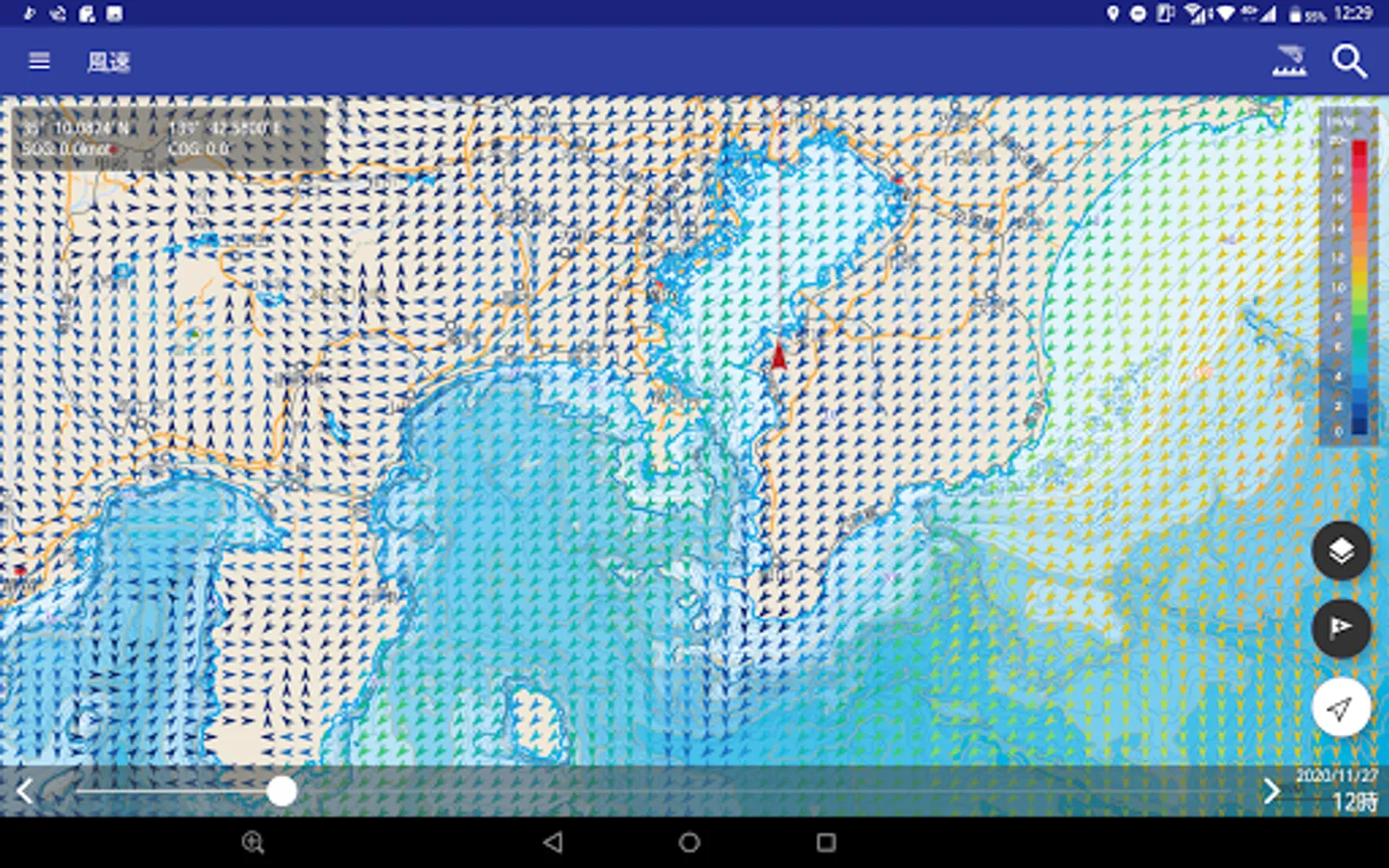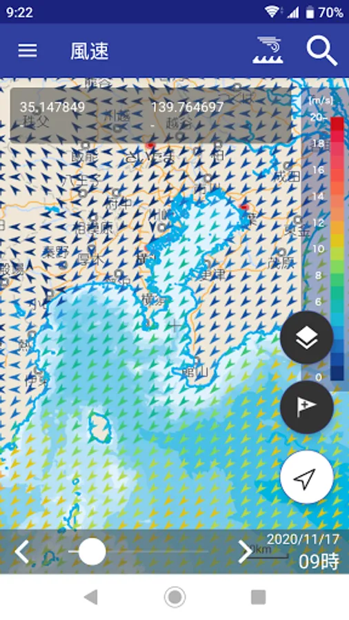 ・Displays wind speed/direction/prediction data