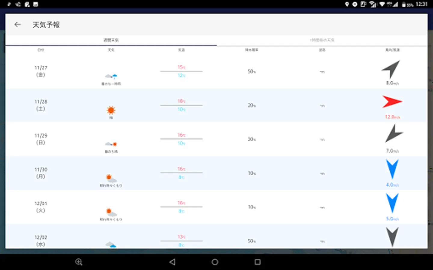 ・Pinpoint weather forecast by latitude and longitude of current location and map center point (1-hour forecast/weekly weather)