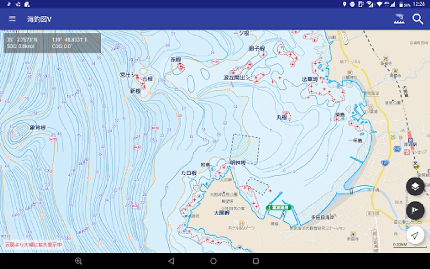 "Sea fishing chart V" is the successor version of the sea fishing map app "Sea fishing chart" that uses part of the data of "Electronic reference map for navigation new pec (provided by Japan Hydrographic Association)".