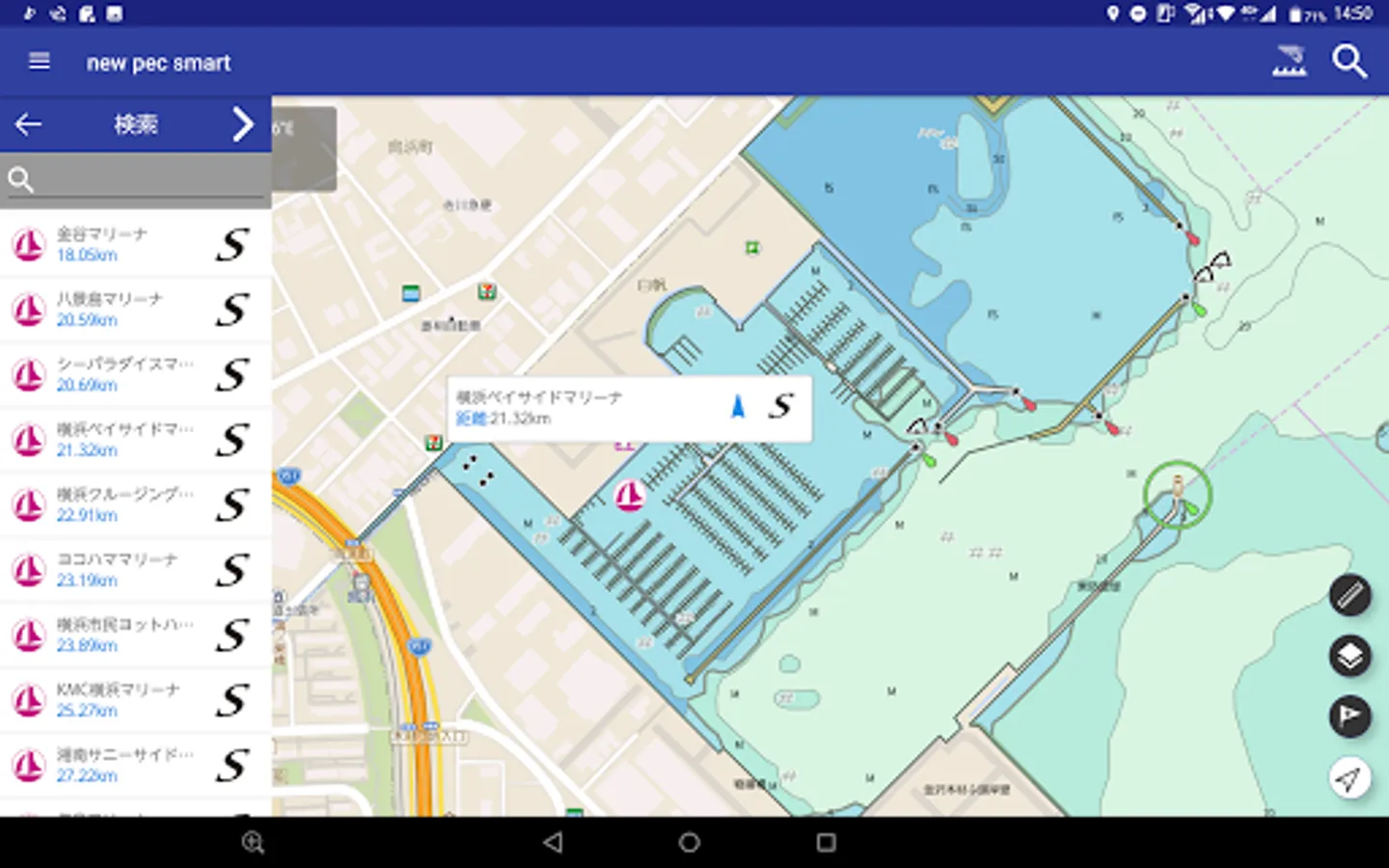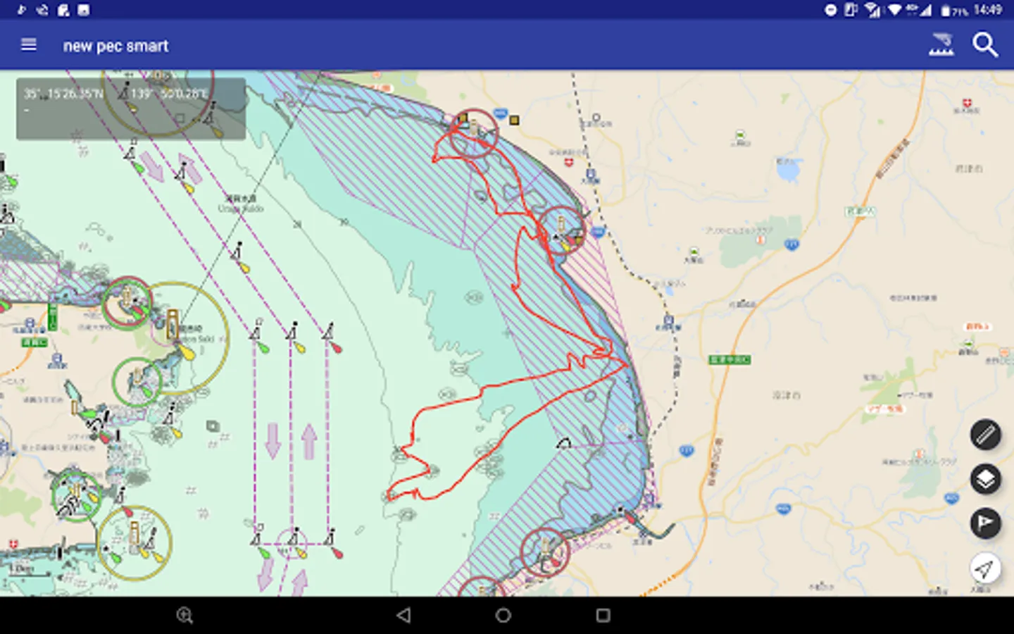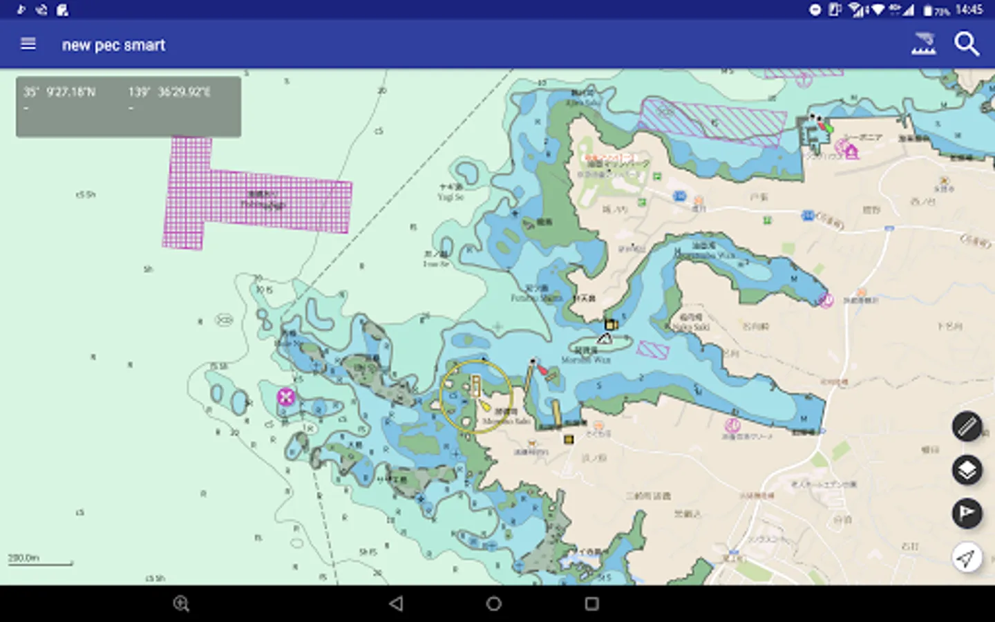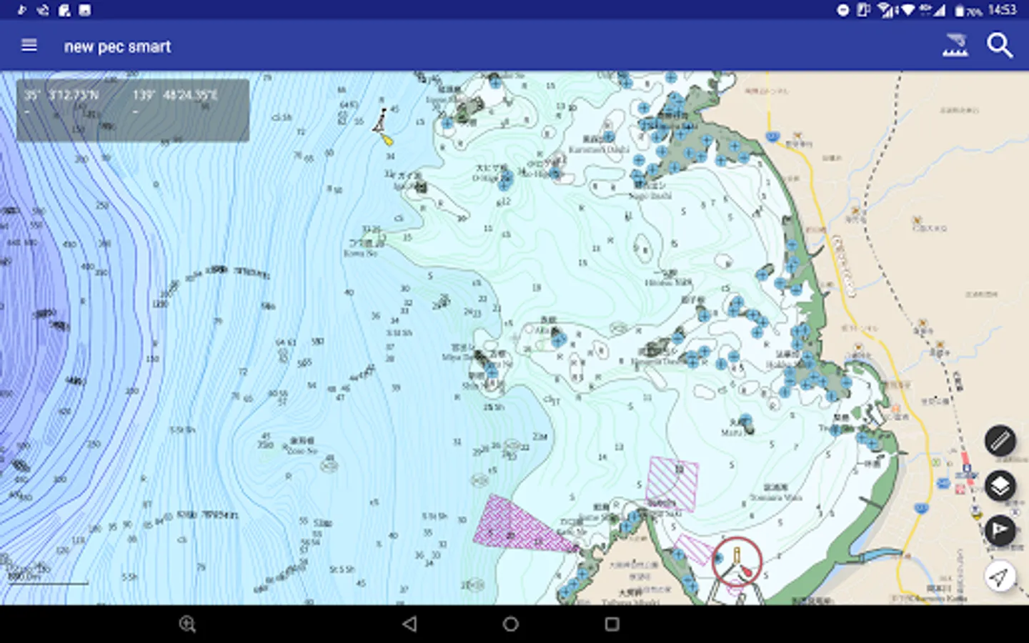 "new pec smart" is a full-fledged voyage support application that is fully equipped with "new pec (★)" data and has been approved as a legal fixture (alternative to nautical charts) for small coastal vessels.