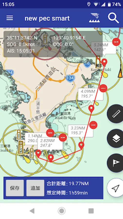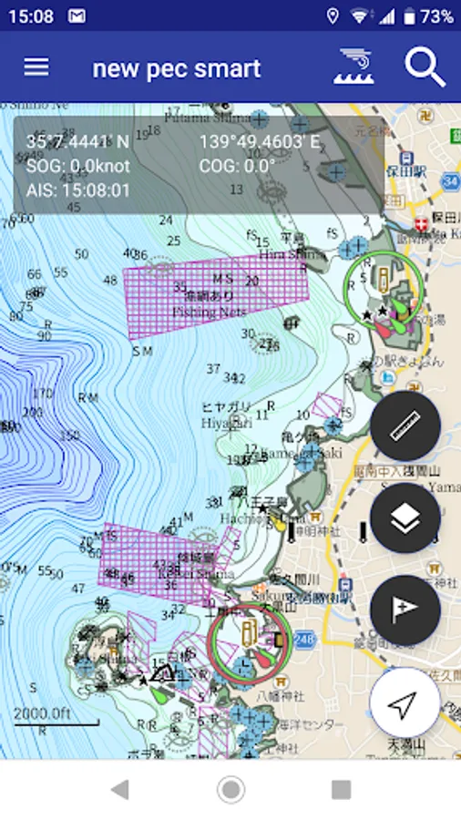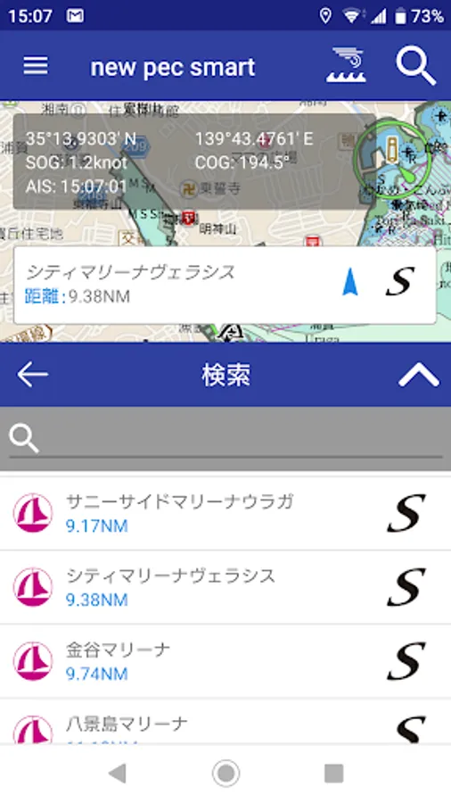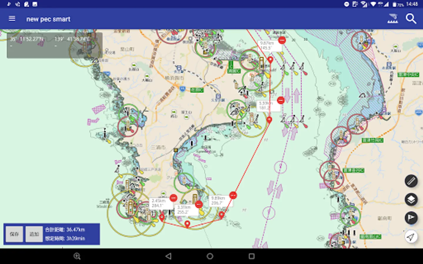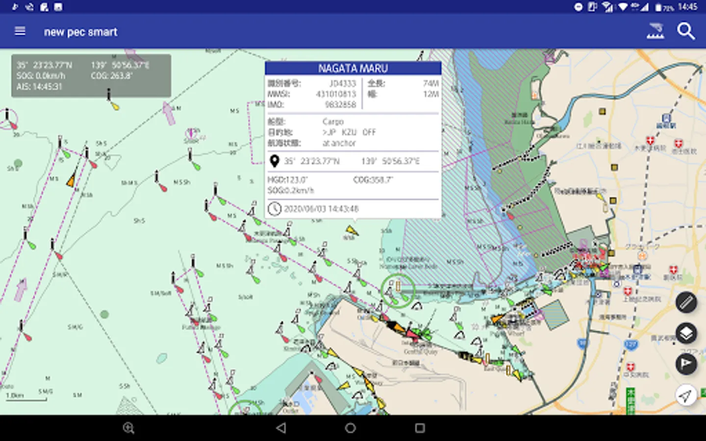 "new pec smart" is a full-fledged voyage support application that is fully equipped with "new pec (★)" data and has been approved as a legal fixture (alternative to nautical charts) for small coastal vessels.