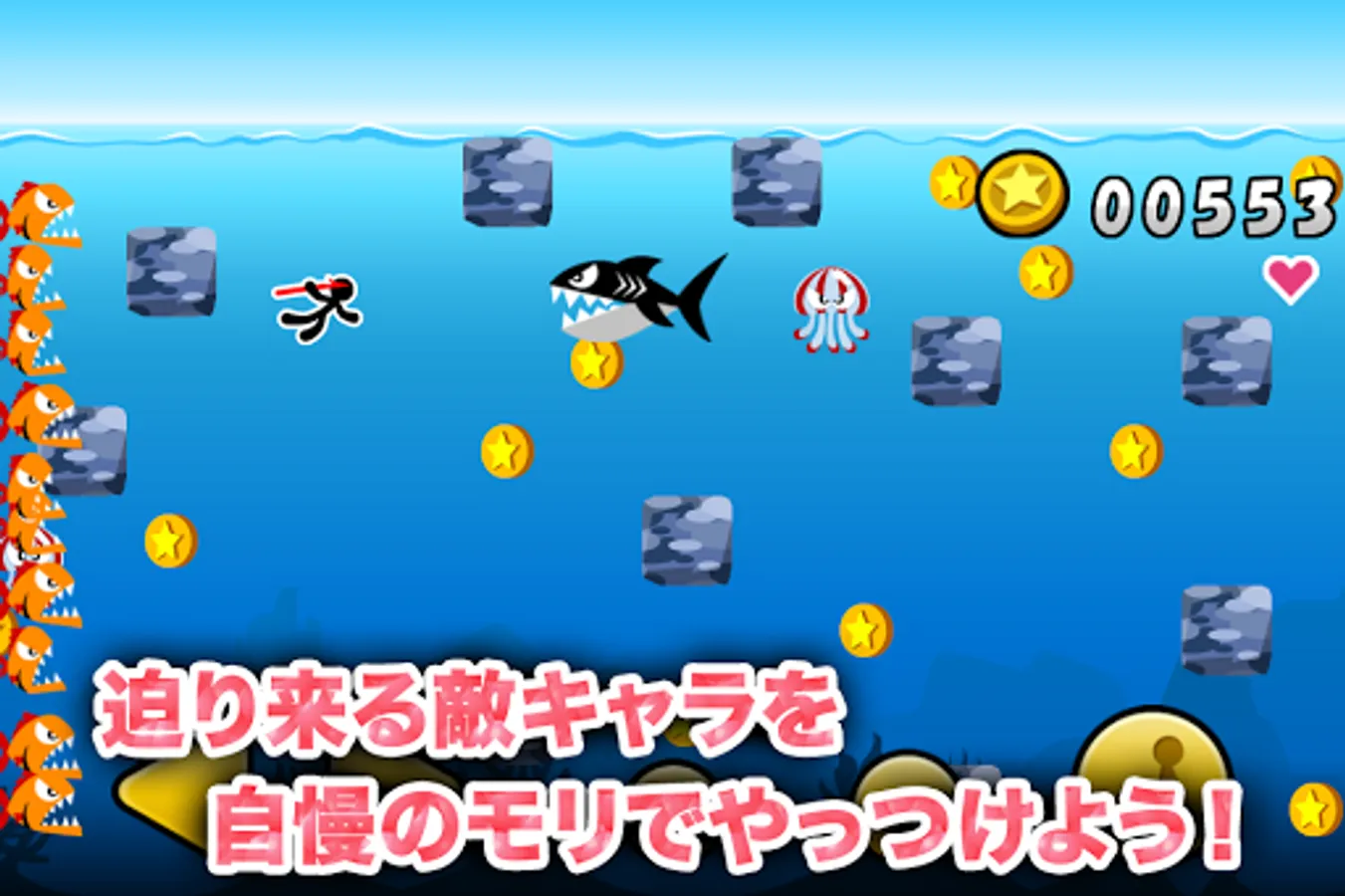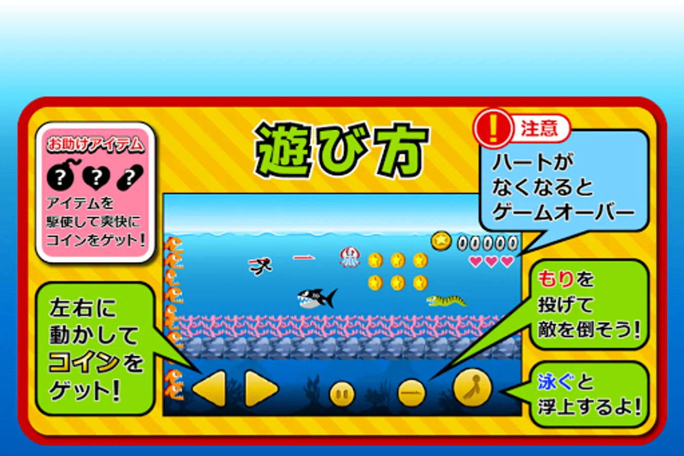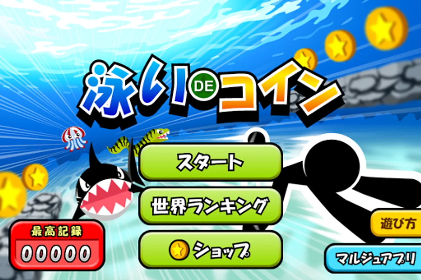 Let's take a coin to swim back and forth using the buttons on the left and right.