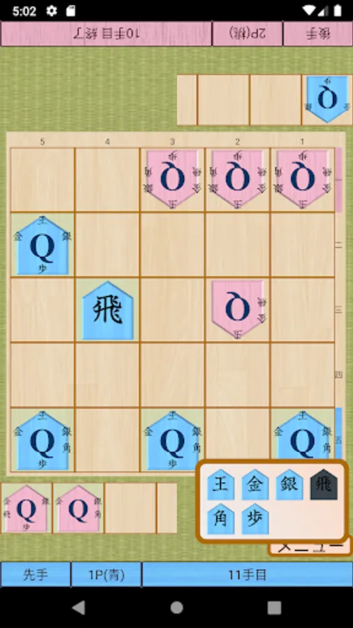 5×5マスの量子将棋(5五将棋)をデフォルトにしています。