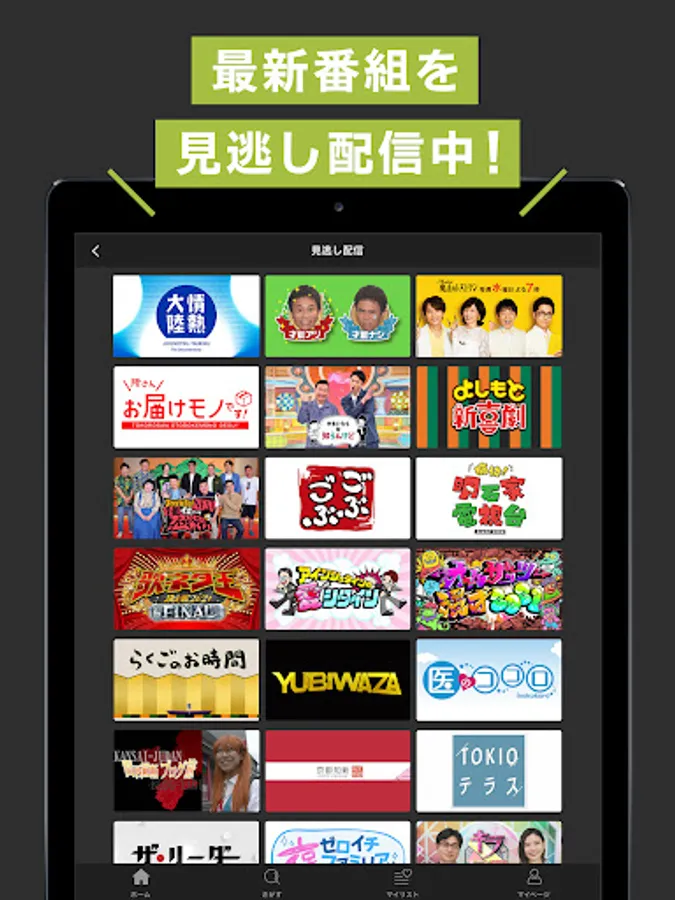 You can enjoy missed delivery of TV programs (drama, animation, variety, etc.) broadcasted by MBS for free.
