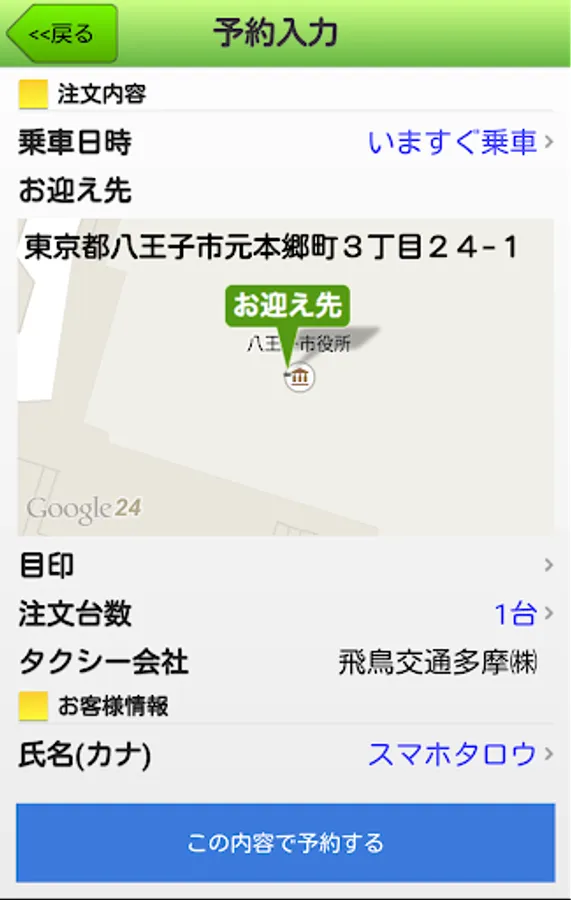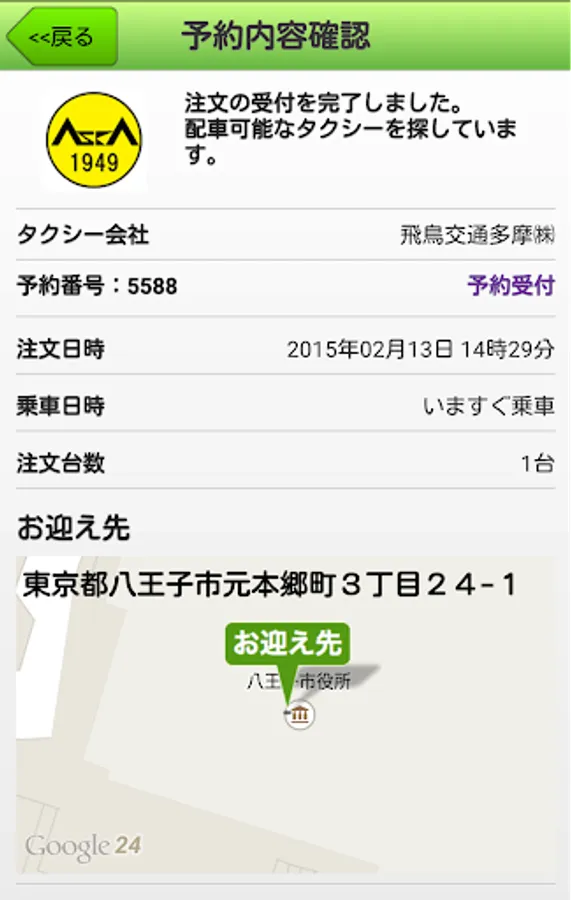・本アプリでタクシーをご注文いただいた場合は、電話でのご注文と同様に、