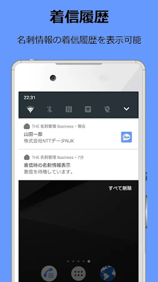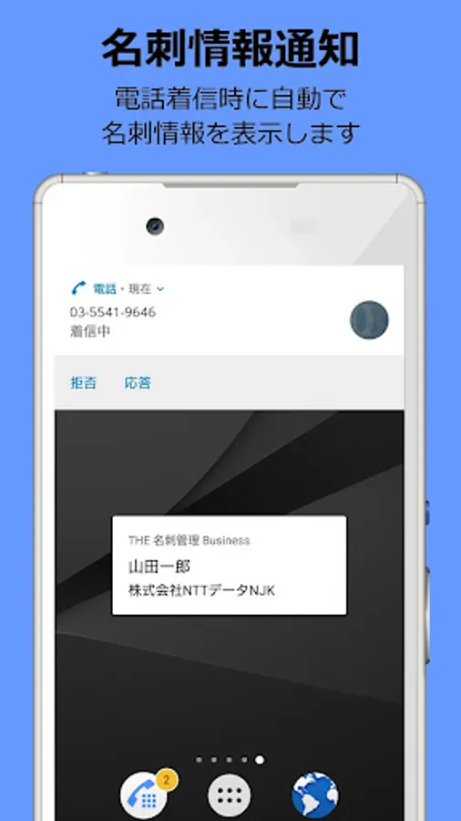 電話着信時には、登録済みの名刺を瞬時に表示。着信中に発信者情報が確認できます。