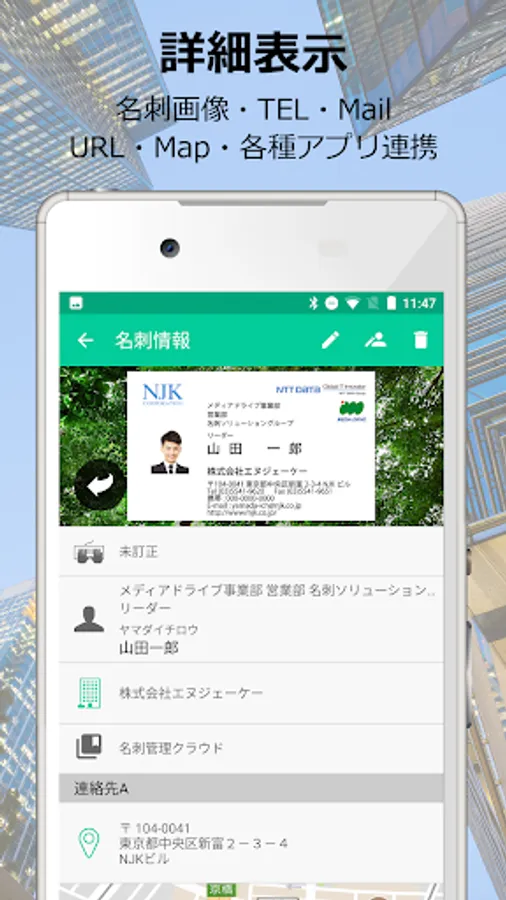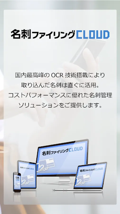 By taking a business card in the smartphone, and the text of a business card using the cloud fast and highly accurate OCR engine, it is a business card management application that can be immediately registered in the cloud on the spot.
